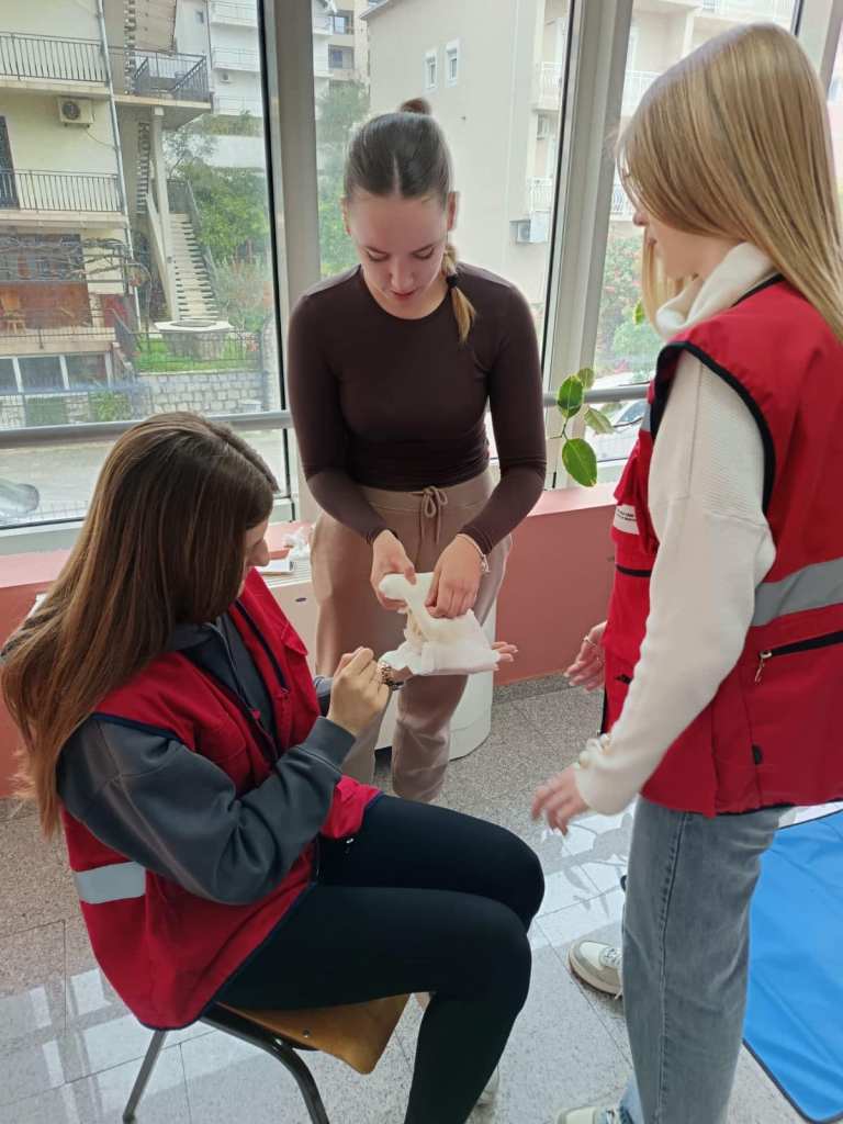 Volonterke Crvenog krsta Tivat, našim učenicama, prezentovale su osnove pružanja prve pomoći i govorile o djelatnosti Crvenog krsta