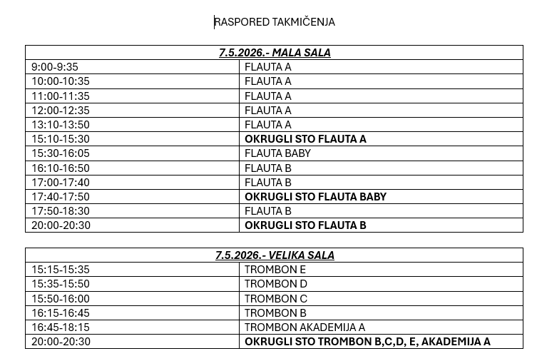 RASPORED TAKMIČENJA