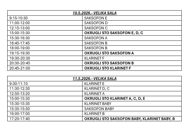 - Žiri za obou, klarinet, saksofon i fagot: